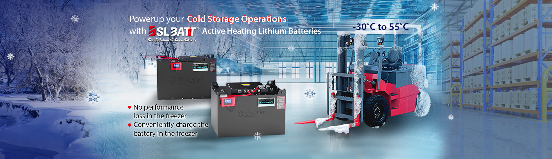 Lead-acid batteries suffer significant performance loss, up to 50%, at temperatures below -20°C, necessitating frequent swaps and charges. Upgrade your fleet to BSLBatt lithium batteries with Active Heating to enjoy several advantages. An integrated heating element maintains optimal cell temperature allowing you to extract full performance even in -35°C. These batteries can be charged within the freezer, minimizing moisture buildup, reduce condensation and increase uptime of the MHE.
