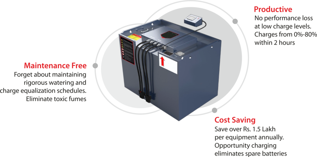 With no hazardous fumes or acid spills, Nexilon lithium batteries make your operations safe & reduce carbon footprint