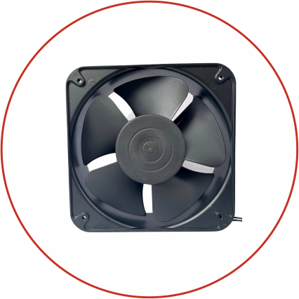 The compact fan extracts ambient air through ducts in the battery housing and dissipates it via the metal side of the modules to provide targeted active cooling.